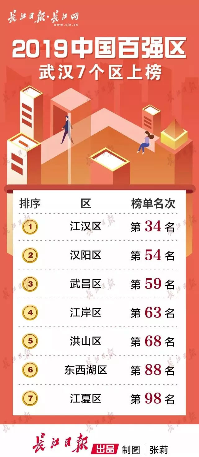 近日,工業(yè)和信息化部發(fā)布《2019中國(guó)城區(qū)綜合競(jìng)爭(zhēng)力百?gòu)?qiáng)研究》。武漢市有7個(gè)區(qū)上榜,分別是江漢區(qū)、漢陽(yáng)區(qū)、武昌區(qū)、江岸區(qū)、洪山區(qū)、東西湖區(qū)、江夏區(qū)。